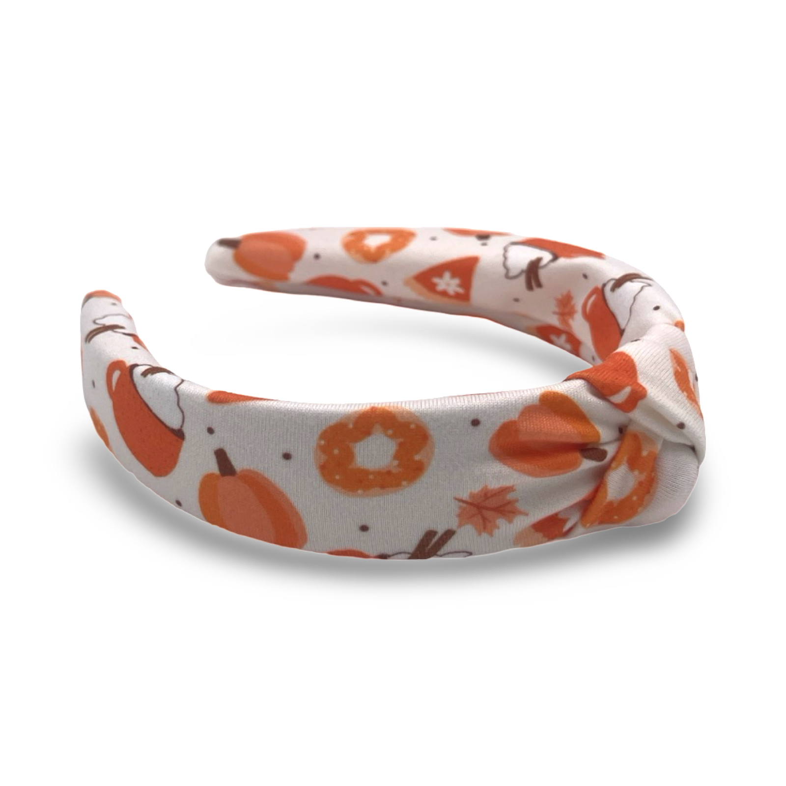 Material: Soft, pliable fabric-covered headband. Headband is approximately 1.5 inches at the widest part.