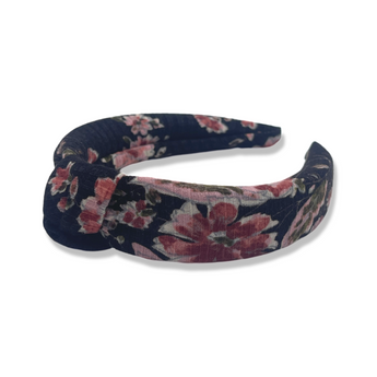 Material: Soft, pliable fabric-covered headband. Headband is approximately 1.5 inches at the widest part.
