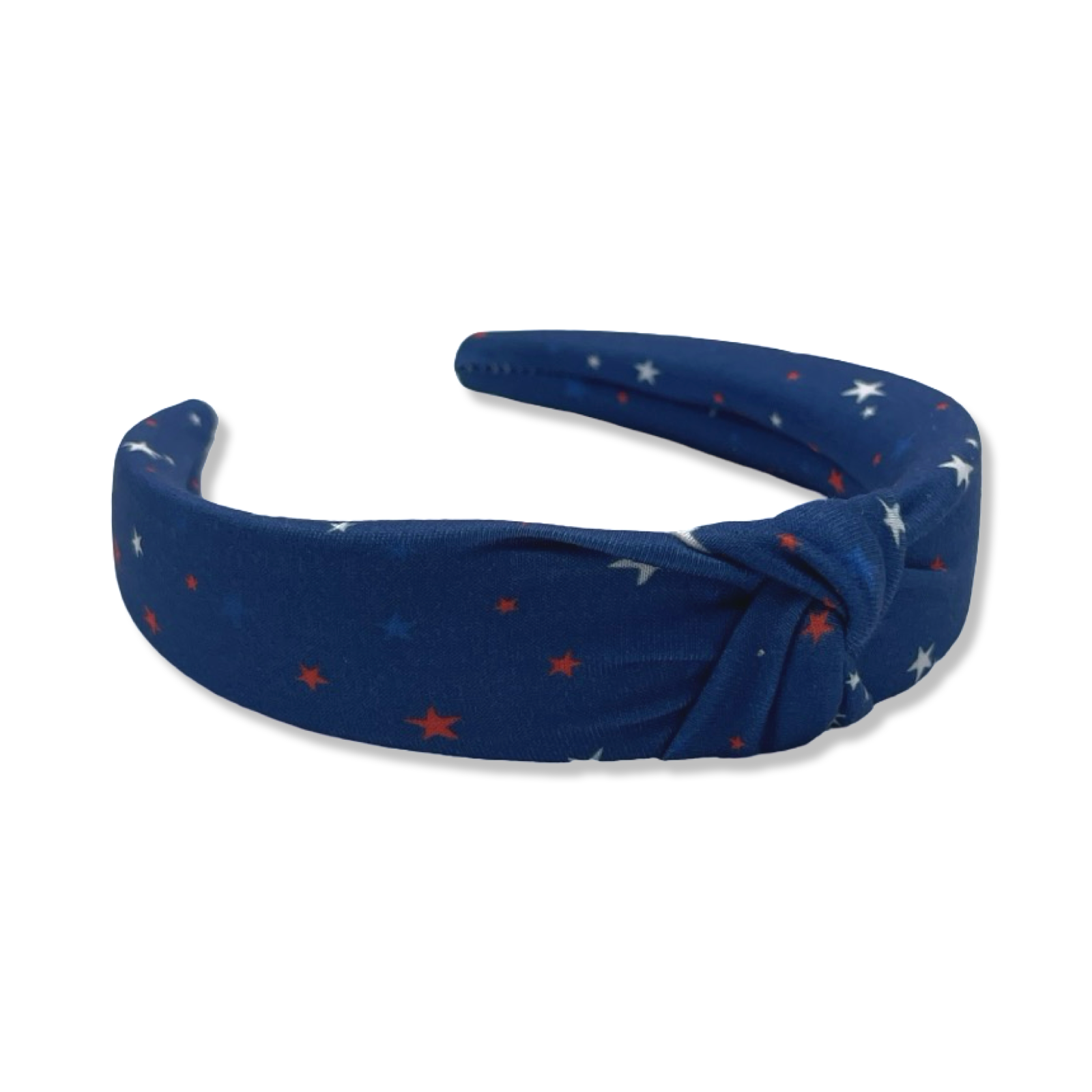 Material: Soft, pliable fabric-covered headband. Headband is approximately 1.5 inches at the widest part.