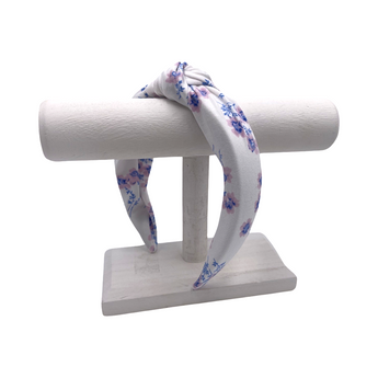 Material: Soft, pliable fabric-covered headband. Headband is approximately 1.5 inches at the widest part.